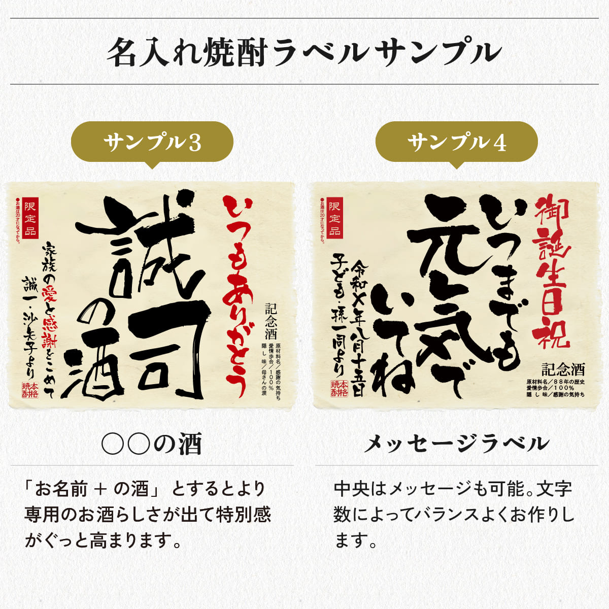 名入れ焼酎720mlのラベルサンプル ラベルサンプルをもっと見る
